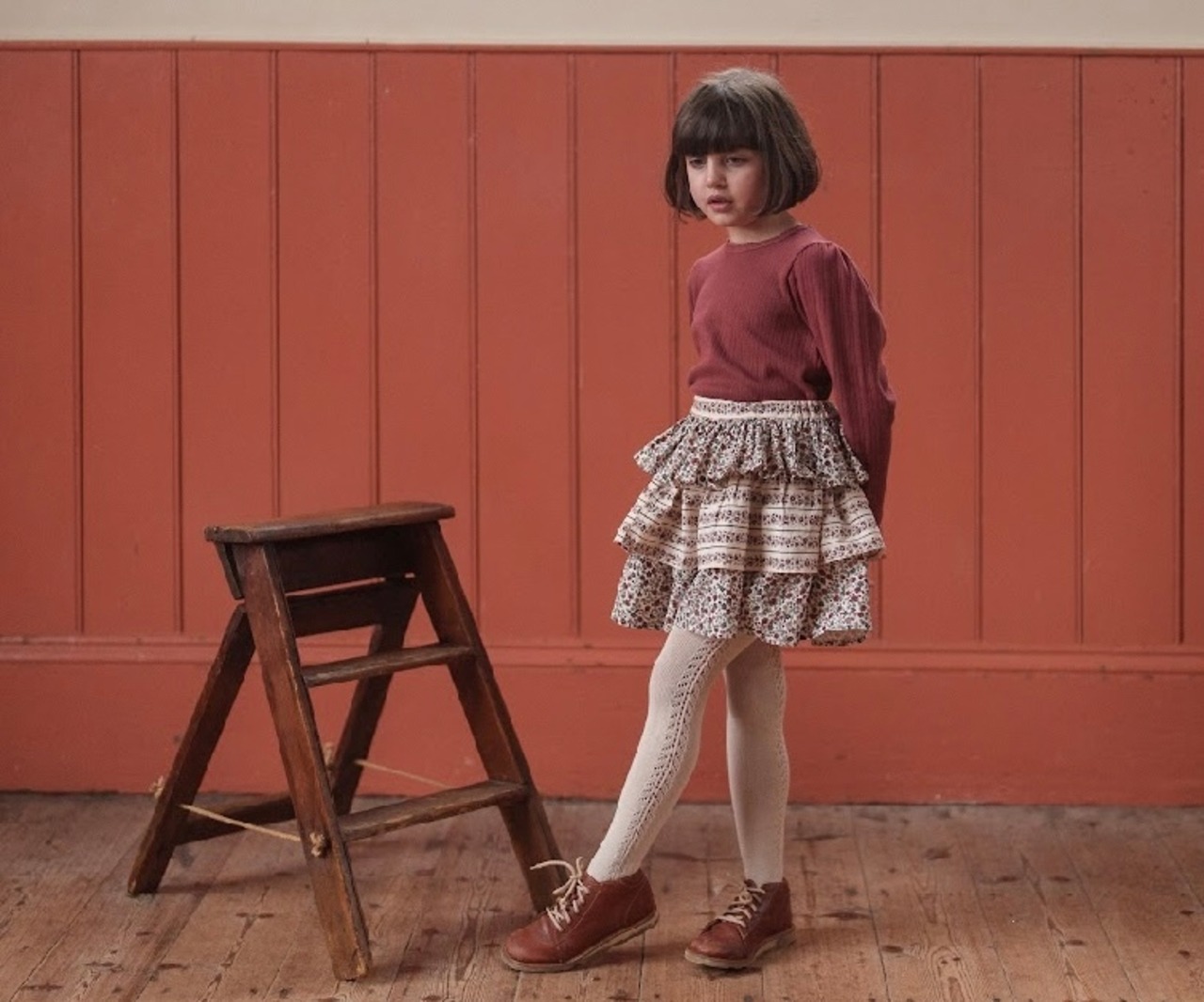 ララスカートは、日常にはもちろん特別な日のドレスアップにも合い、とても可愛いです。ブラウスやTシャツ、ロンTとの組み合わせも相性がよく、着回ししやすいスカートとなっております。スカートは伸縮性のあるバックウエストとなっており、柔らかく通気性のあるこの綿生地は、お子様の肌に優しいです。