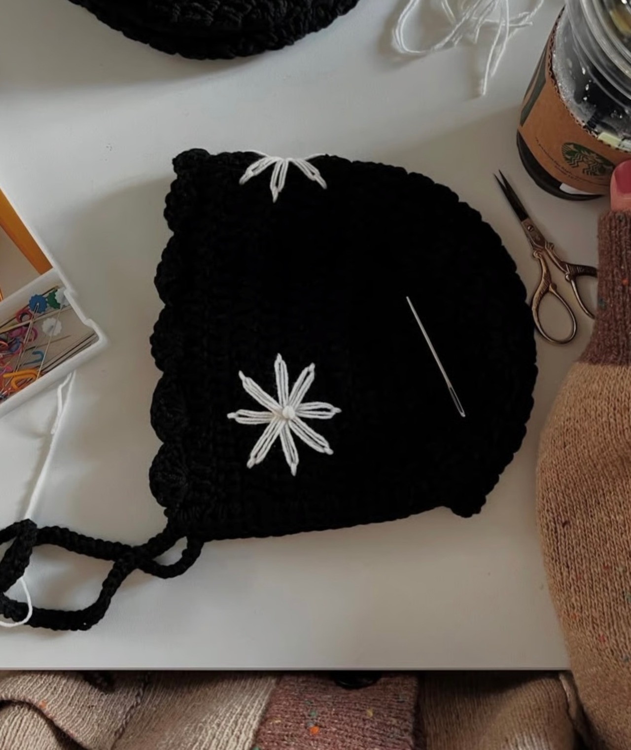 Mazukuri - Embroidery bonnet (black)