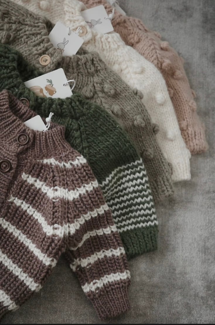 ジェンは、2人の息子のためにさまざまなニットアイテムを追求し、最終的にはベビーアイテム用品を拡大していきました。